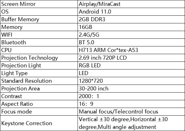 1*projector, 1*remote control, 1*instruction manual, 1*power cord